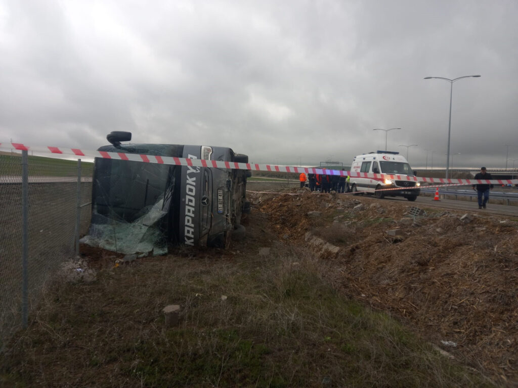 Aksaray’da tur otobüsünün şarampole devrildiği kazada ilk belirlemelere göre 20 kişi yaralandı. Kaza, saat 16.30 sıralarında Ankara- Niğde otoyolu Alayhan